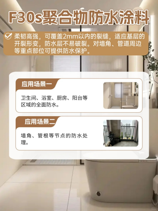 三、F30s聚合物防水涂料:柔韧高强的裂缝克星